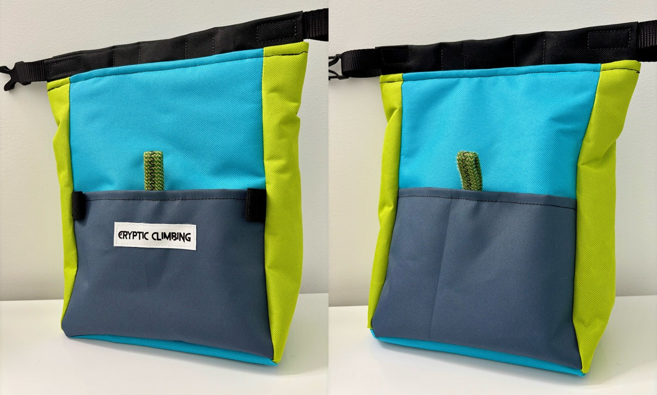Each Cryptic Climbing Chalk Bag is proudly made by hand in Springfield, Mo. Check back sporadically as we are always making new chalk buckets!